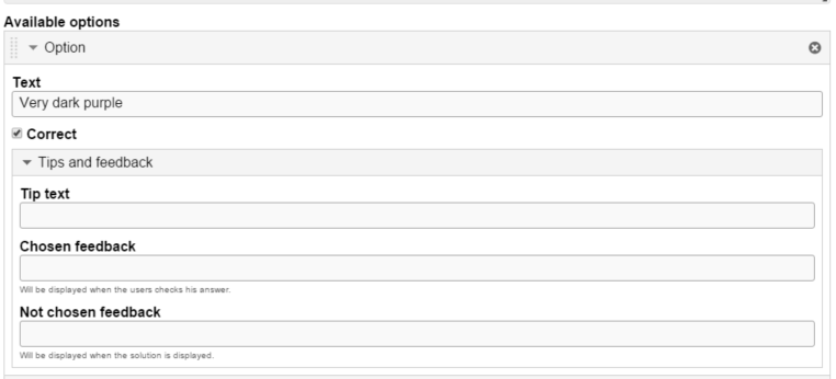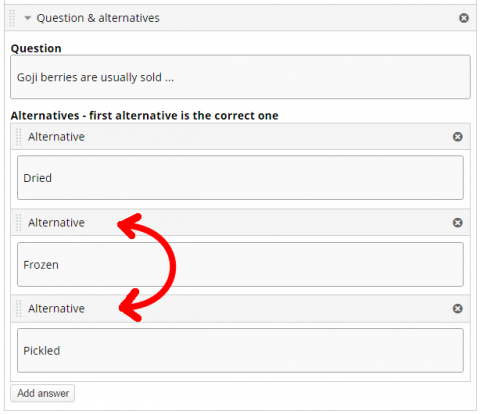 button in the top right corner of the Option. You change the order of the answering options by pulling the