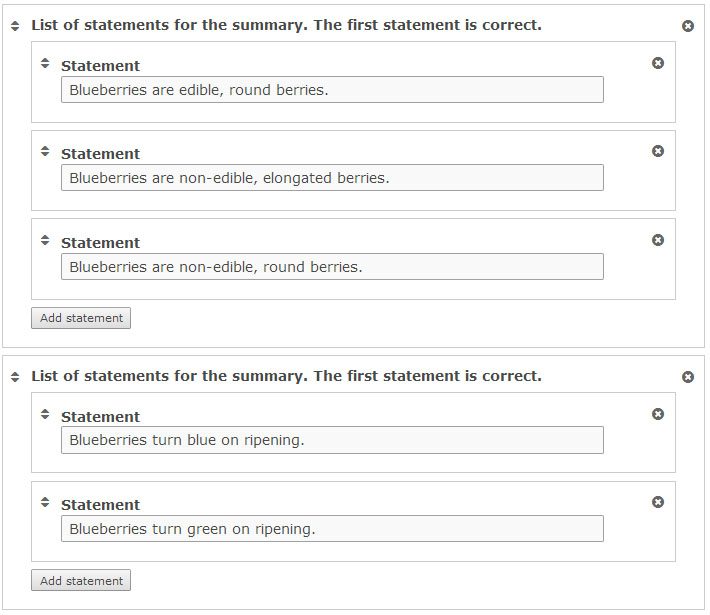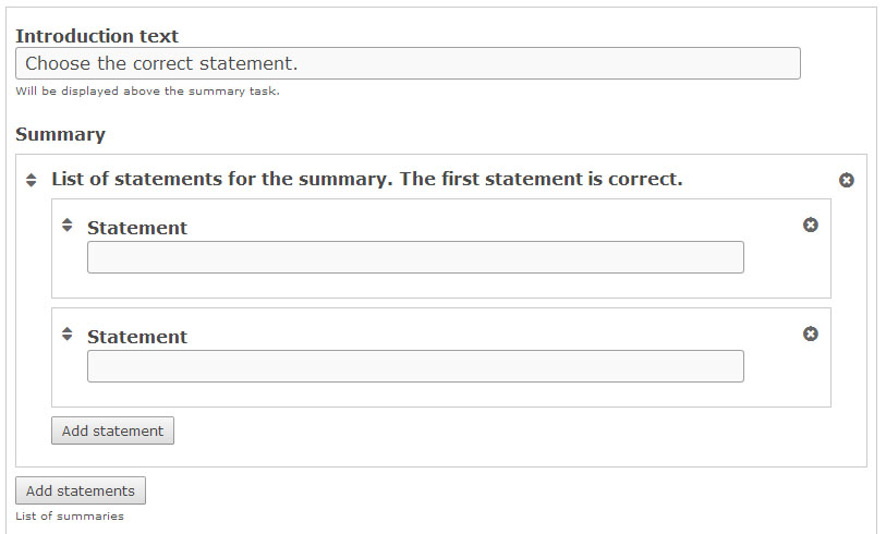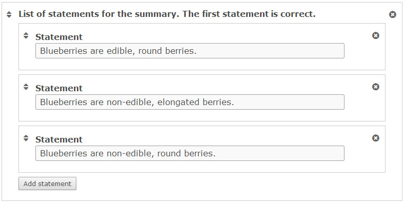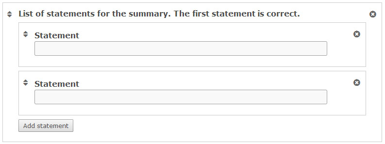 button in the top left corner of the statement group, drag it to the top of the List of statements, and drop it there. Now the correct statement is at the top of statement group, as it should be.